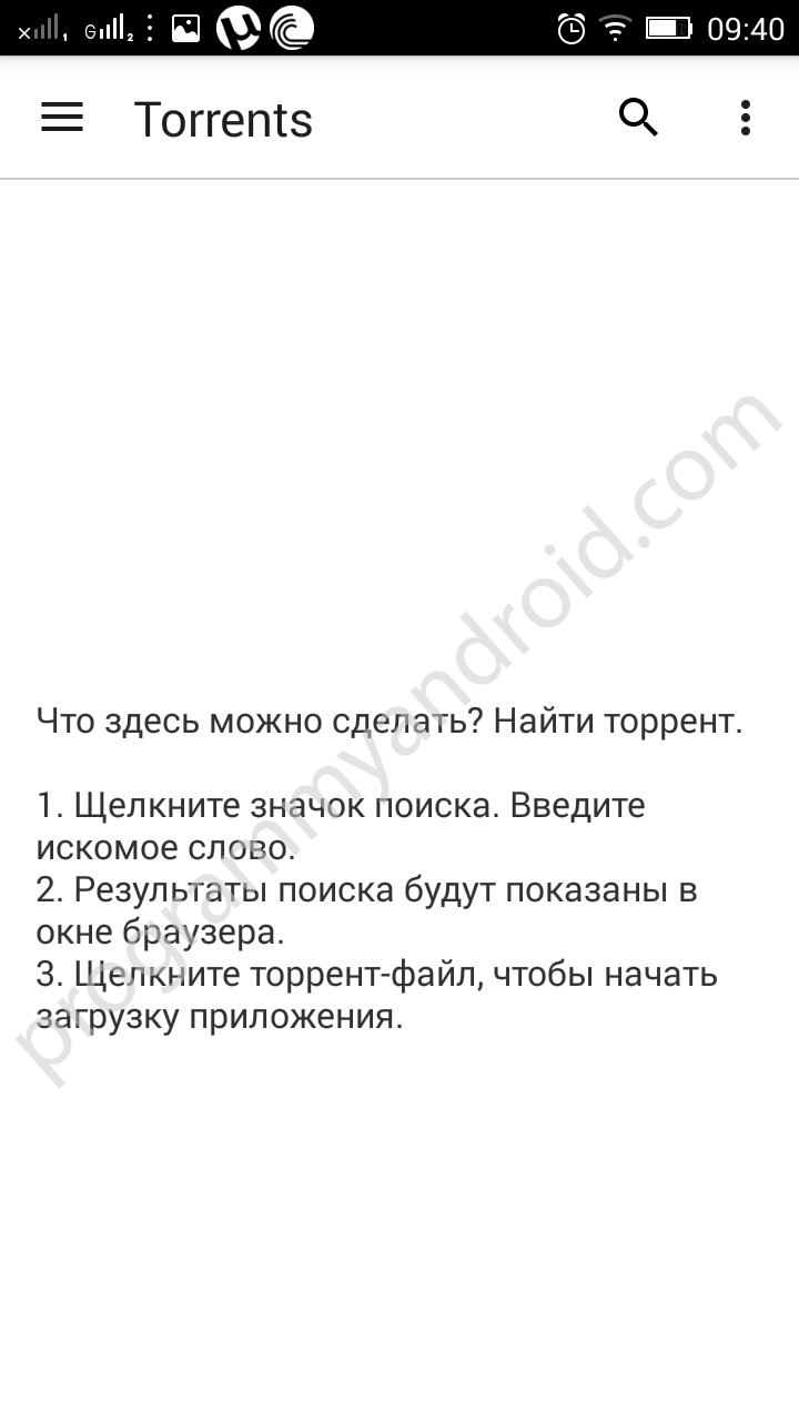 The application interface is simple and very convenient, even a beginner can understand how the program works, and an experienced user will appreciate the presence of fine settings. First, you need to download the Torrent client program for Android for free a direct link from the site https://programmyandroid.com to the corresponding Google Play page.